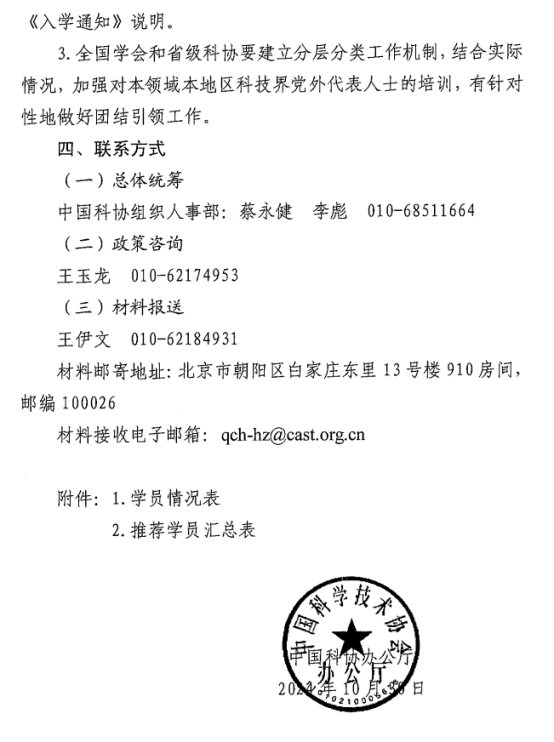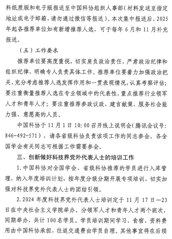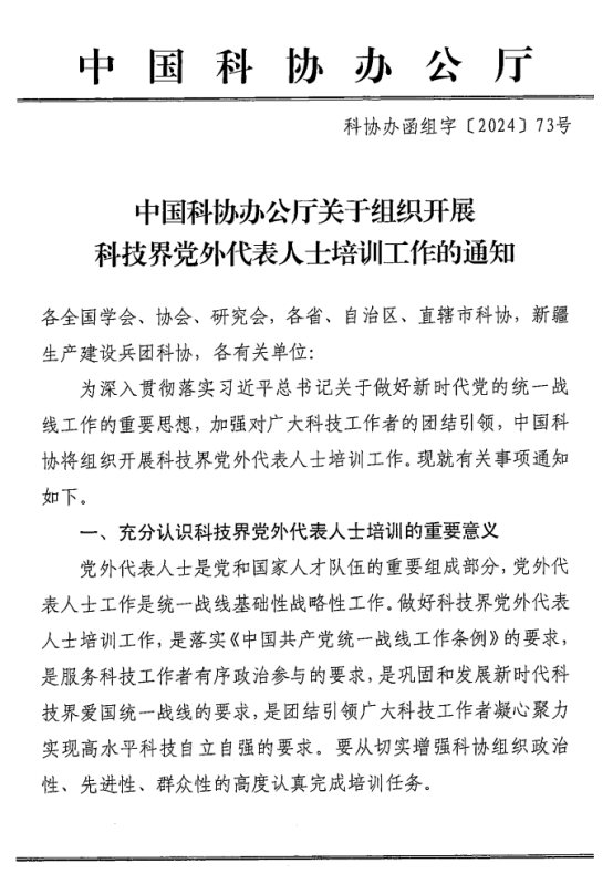 中國科協辦公廳關于組織開展科技界 黨外代表人士培訓工作的通知