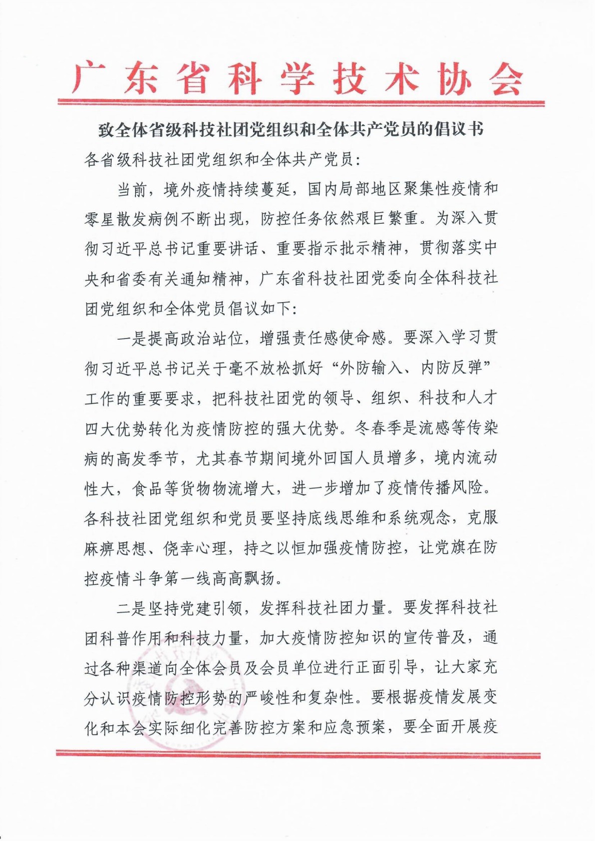 【轉(zhuǎn)發(fā)】致全體省級科技社團(tuán)黨組織和全體共產(chǎn)黨員的倡議書